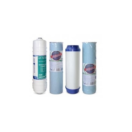 A szűrőkészlet 3 db szűrőbetétet és 1 db ultraszűrőt tartalmaz, amelyek kiváló minőségű vizet készítenek, mivel eltávolítják a szennyeződések jelentős részét.