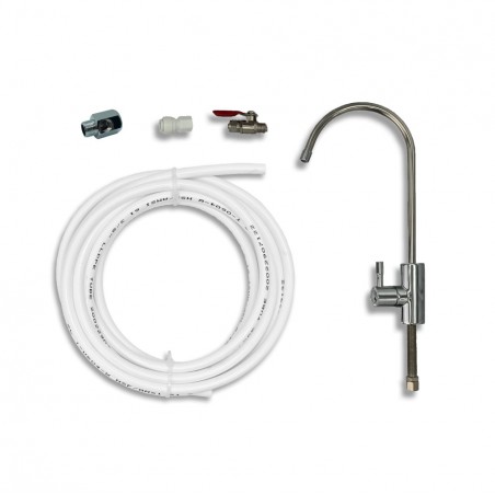 A víztisztító csaptelepek végén kialakított 7/16"-os menetre lehet csatlakoztatni. Az idom másik végén lévő gyorscsatlakozó a készüléktől érkező 3/8"-os vezetéket tudja fogadni. Ezzel a megoldással a csaptelep gyorsabban és biztonságosabban csatlakoztatható, mint a hagyományos roppantó gyűrűs, hollanderes megoldással.